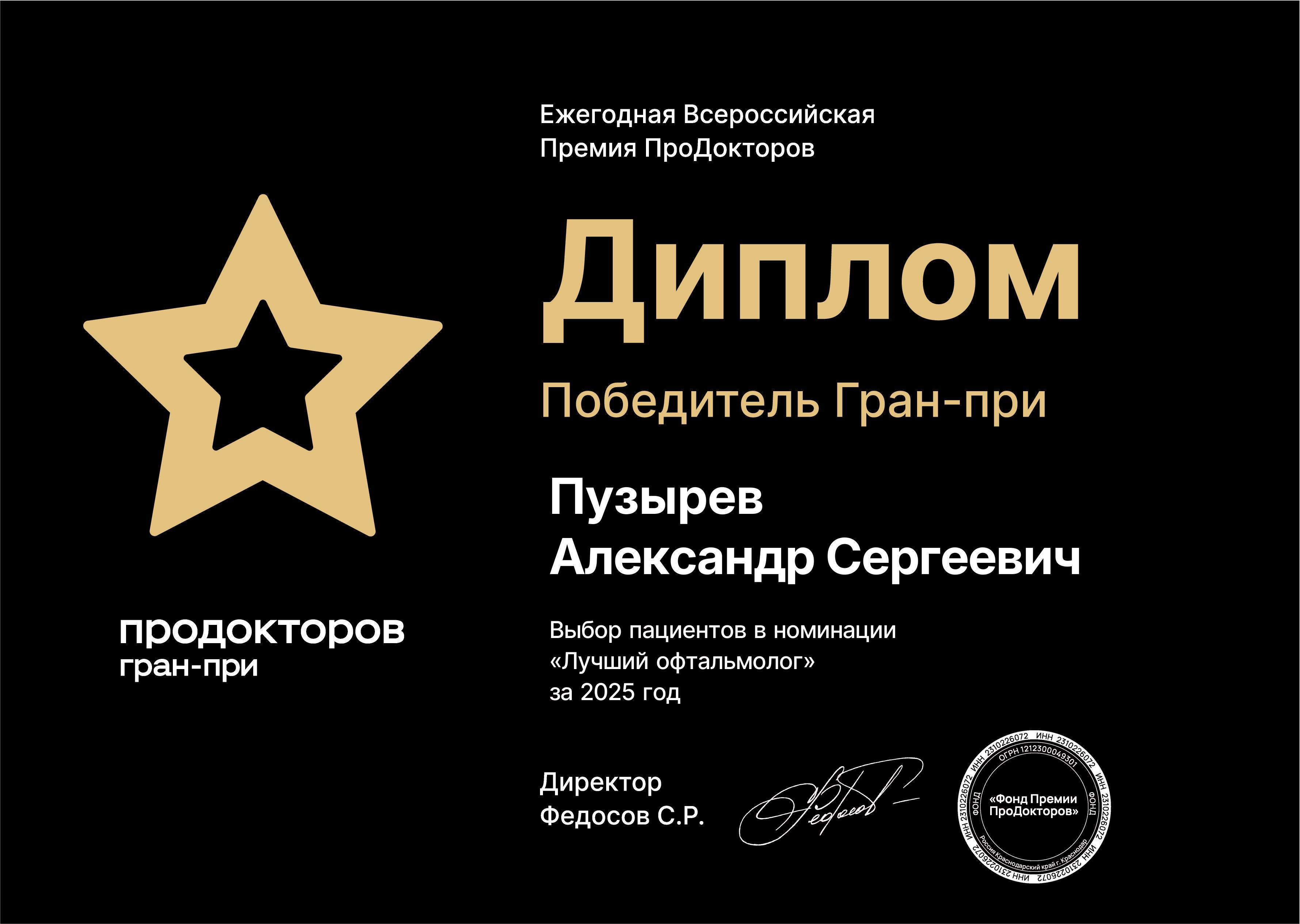 Пузырев Александр Сергеевич стал лучшим офтальмологом России в Гран-при премии ПроДокторов 2025