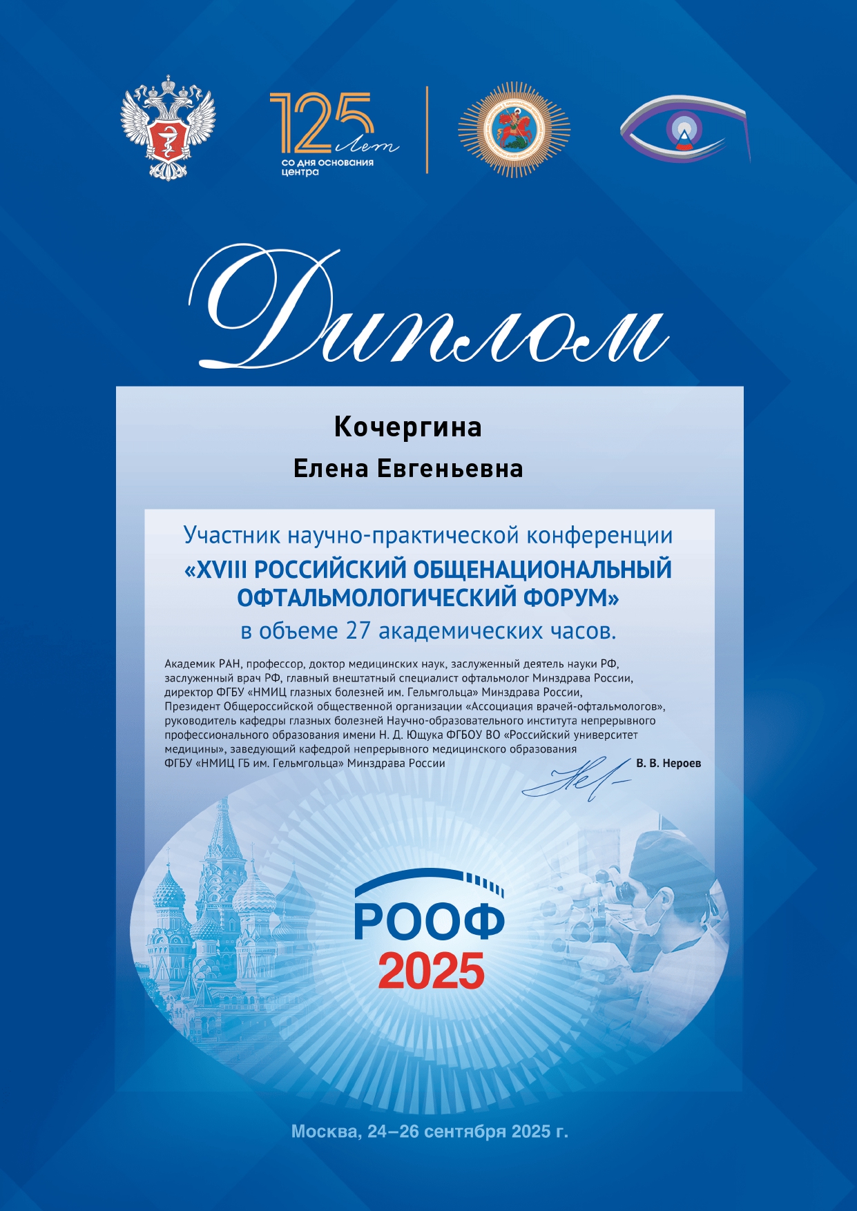 Врач-офтальмолог высшей квалификационной категории